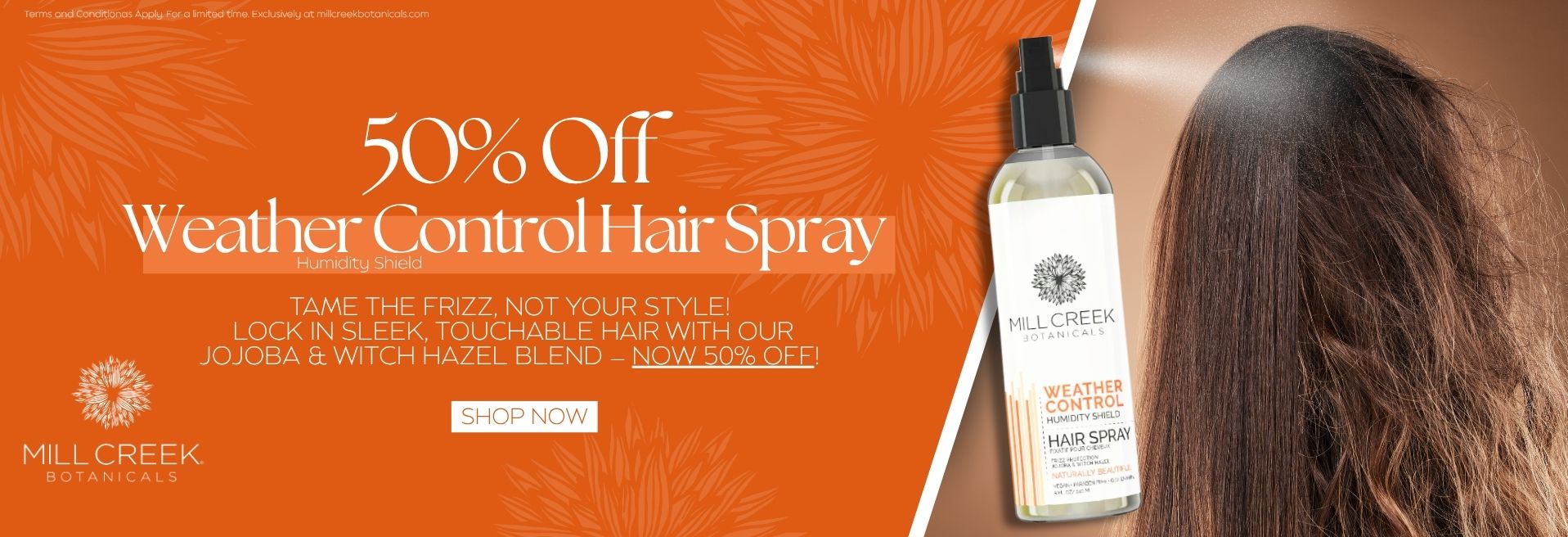 Stay sleek through wind, rain, and chilly weather. Our Weather Control Hair Spray keeps your style smooth and frizz-free — now 50% off for a limited time
